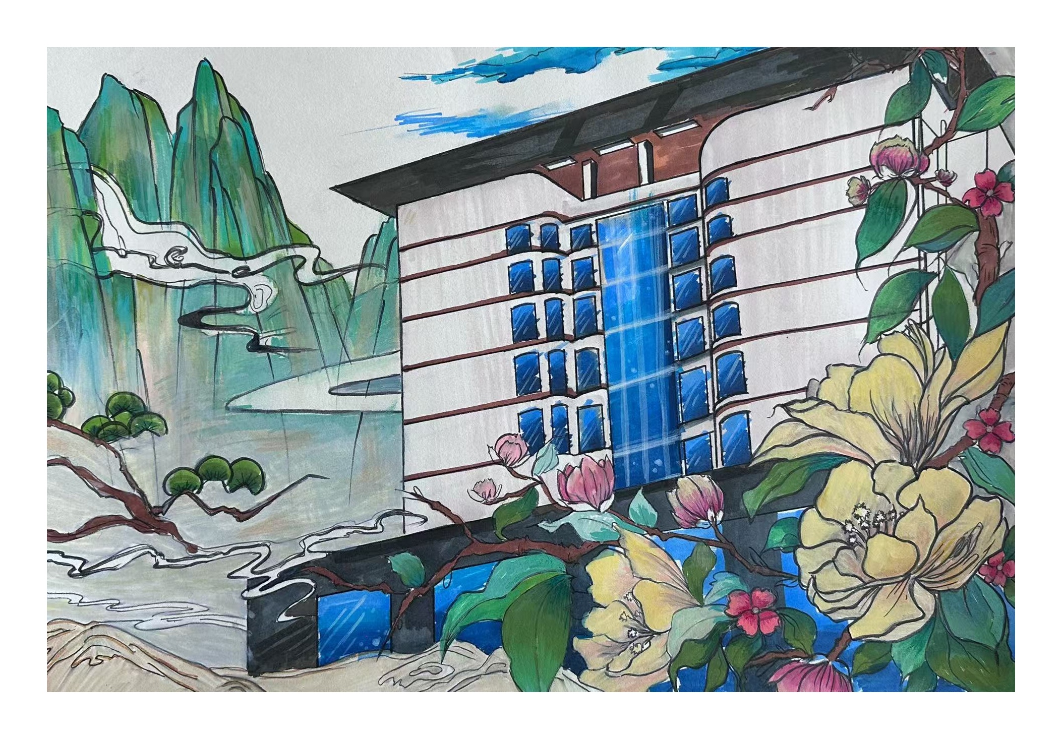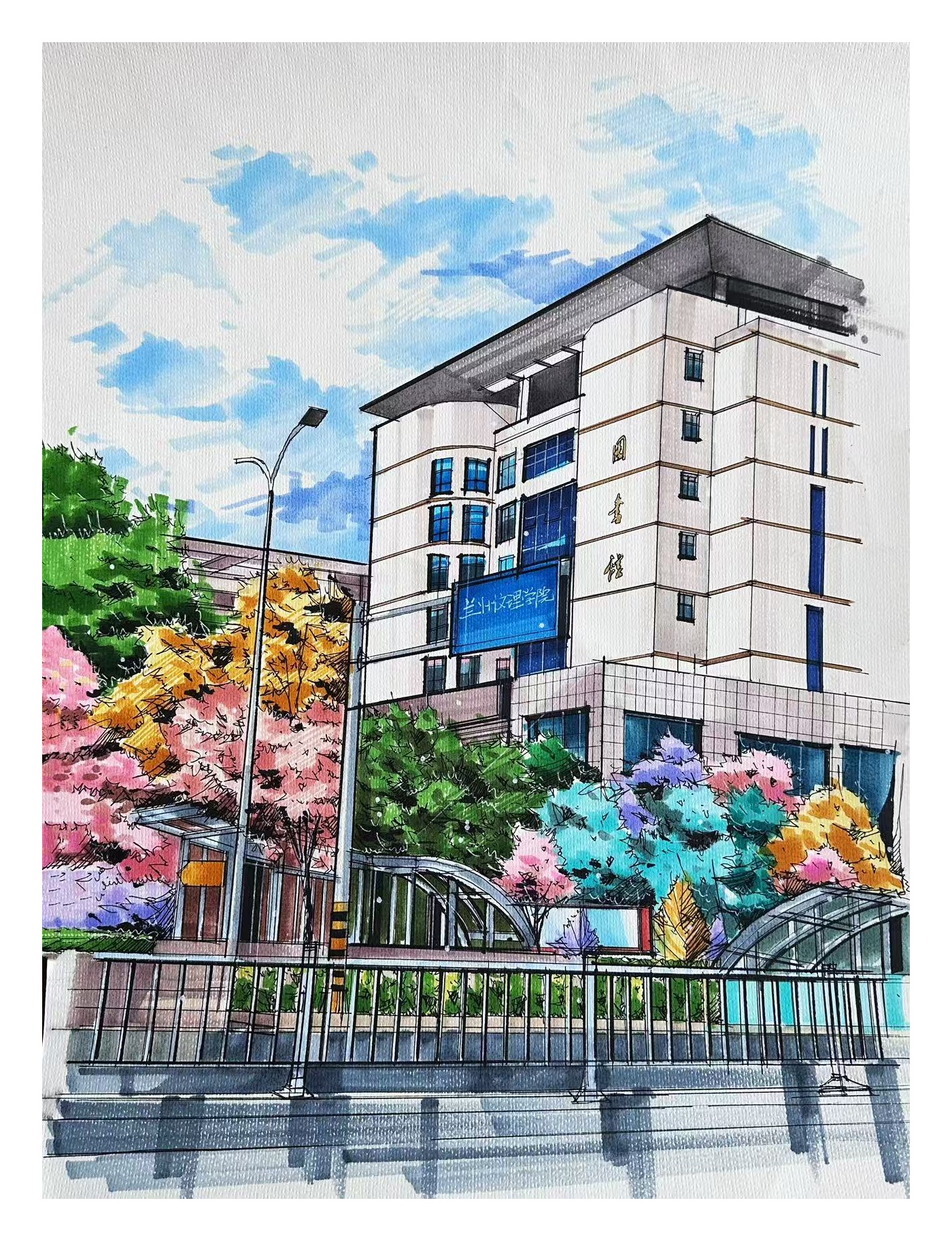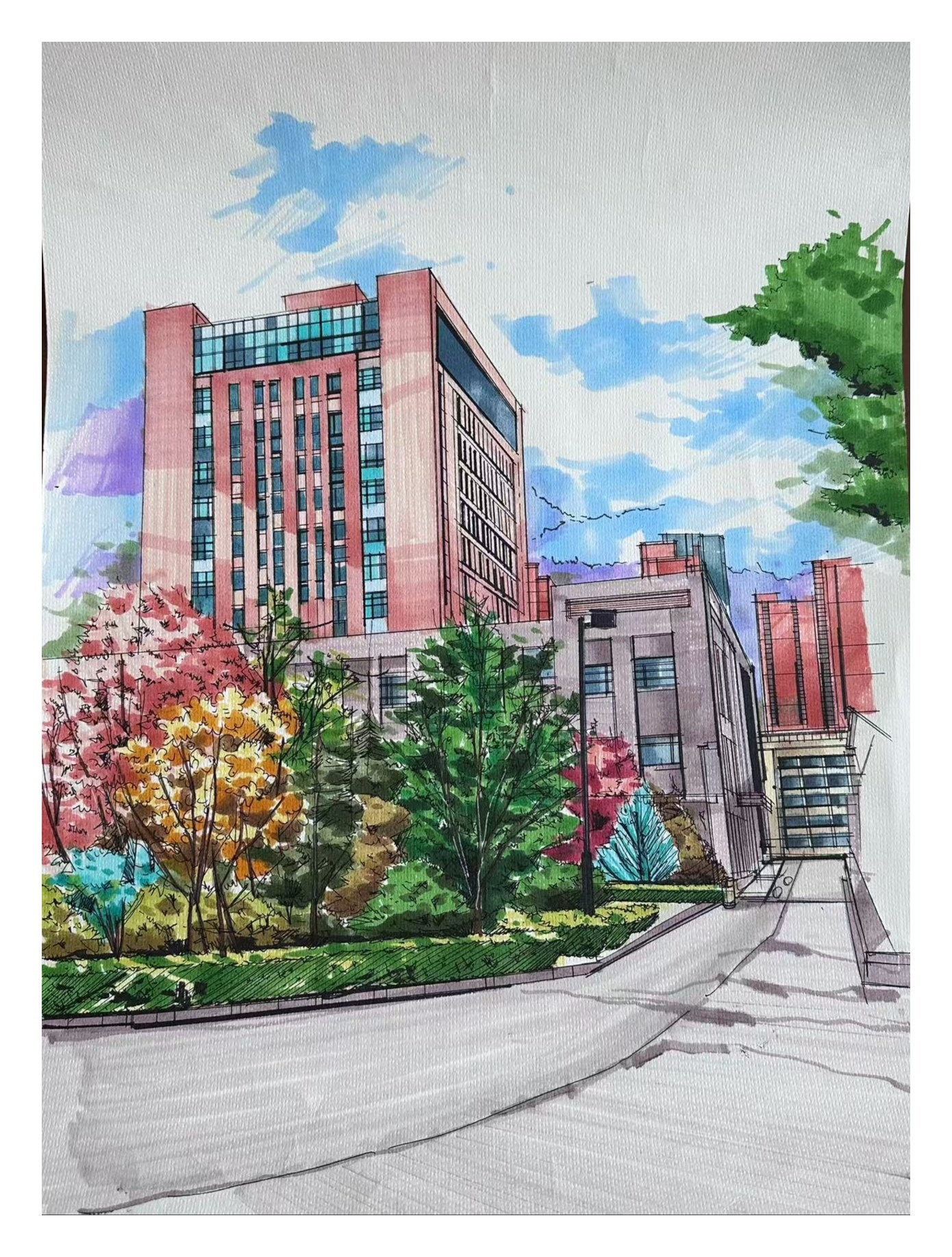 活动中同学们手持画笔走进校园的建筑群与春日景观带用手中的画笔勾勒出心中的魅力校园,用色彩挥洒那些熟悉的场景,校园的动态在他们的笔下纷纷呈现,每幅作品都充分反映了他们热爱校园、积极向上的精神风貌。