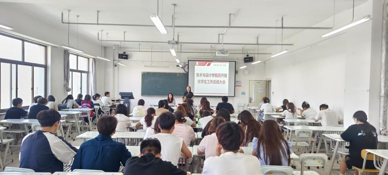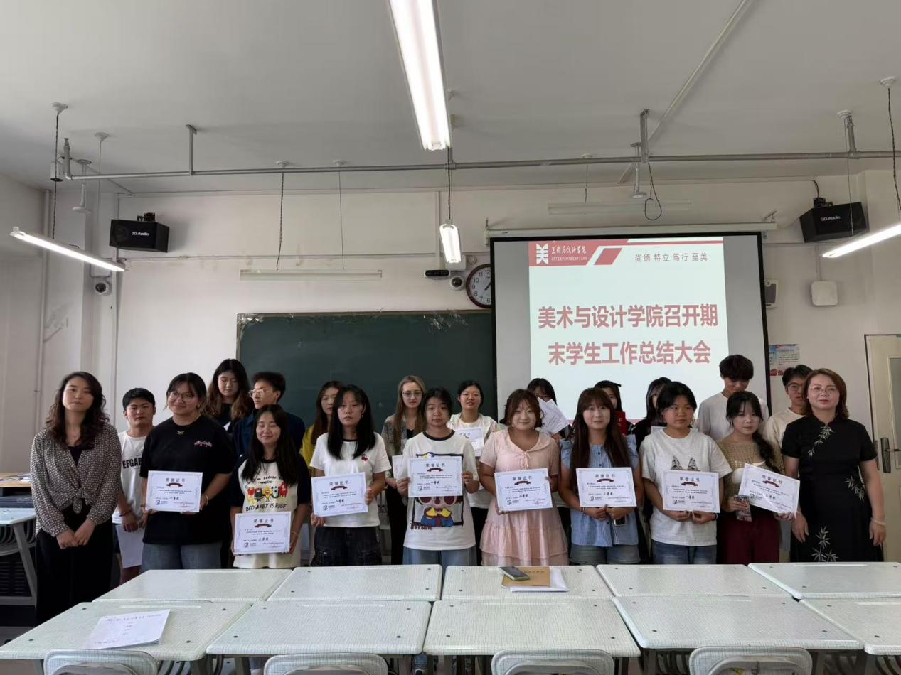 会上,唐老师对我院本学期学生工作进行了全面的总结。本学期团学办从日常工作着手,以班级团支部为抓手,在青年学生中开展理论学习和宣讲活动,提高全院学生的理论素养。紧抓学风建设,结合学院分团委“画”中有“话”的学院特色,开展“以美慧心 铸魂育人”美育特色品牌活动,彰显学院塑造学生健全人格和美好心灵的育人特色;有效开展丰富多彩的校园文化活动,展现美院学子积极向上的精神风貌,激发同学们爱校爱美院的情怀;强化学院学生管理和服务工作,塑造和谐奋进美院的师生风貌;注重学术交流,深化产教融合,推进实践教学等组织大小型活动20次,且活动成果显著。同时完成了今年的五四评优、团员和党员发展推优、2025届毕业生团关系的转接、西部计划的推荐以及校级社会实践团队的组织申报等工作。