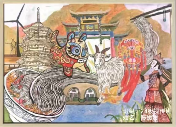(23级环境设计1班贾煜作品——《庆阳风貌》)