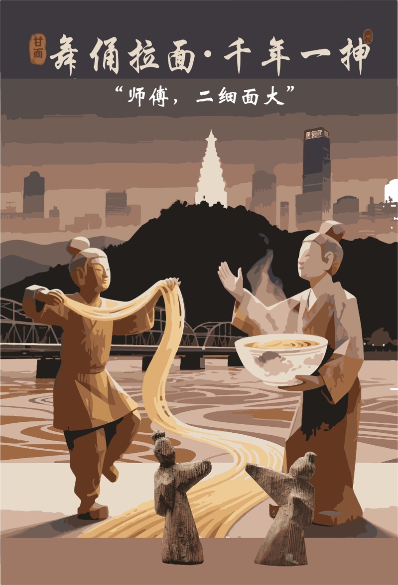 本届大赛由甘肃省文化和旅游厅、甘肃省教育厅指导,甘肃省博物馆与甘肃省数字创意产教融合联盟共同主办,以“遇见千年的她,猜想她的前世今生”为主题,旨在通过数字化手段推动文物创新表达,促进产教深度融合。赛事共收到来自全国百余所高校的1300余件参赛作品,竞争激烈。其中,视觉艺术类仅设8个奖项(一等奖1名、二等奖2名、三等奖5名)。刘思晨同学的作品《舞俑拉面,千年一抻》以甘肃省博物馆馆藏文物木舞俑为素材,将金城兰州的地域特色、深厚的黄河文化与牛肉面相联结,构思出一幅古今交融的奇趣画面,生动诠释了文物背后的历史故事与文化内涵。