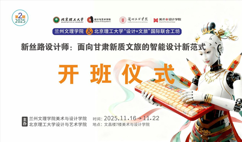 2025年11月17日,北京理工大学设计与艺术学院师生团队再度赴兰,与yl7703永利共同启动以“甘肃新质文旅智能设计”为核心的“设计+文旅”国际联合工坊。此次合作是继今年四月首期工坊后,两校围绕文旅融合与科技赋能开展的更深层次的探索,旨在推动传统工艺与智能技术协同发展,为甘肃文旅产业注入新动能,助力文化数字化国家战略落地实施。