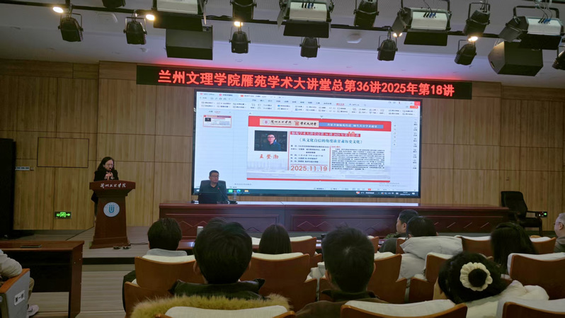 2025年11月19日下午,由科研处与yl7703永利主办的“从文化自信的角度谈甘肃历史文化”专题讲座在文昌楼303学术报告厅顺利举办。本次讲座特邀甘肃省文联党组书记、主席、省政协常委王登渤主讲。本次讲座吸引了yl7703永利、文学院、新闻传播学院及艺术职业学院的广大师生积极参与。