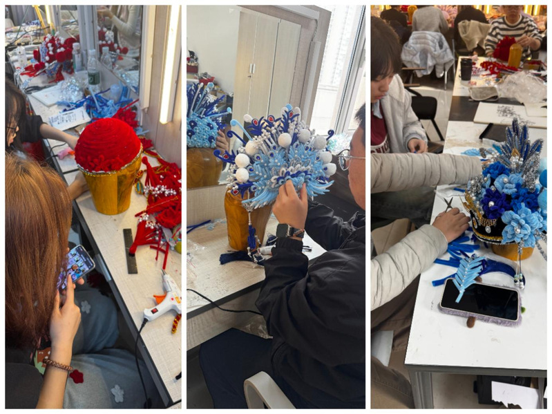 《人物造型设计项目实训》是戏剧影视美术设计专业的核心课程之一,课程涵盖三部分内容:一是传统头饰文化解析,梳理古代冠冕、发簪、步摇等形制的文化内涵与工艺特点,挖掘传统纹样的设计灵感;二是现代头饰设计技法,讲解头饰与脸型、发型、服饰风格的适配逻辑,掌握材质选型、结构搭建、色彩搭配的核心技巧;三是实战创作指导,从草图构思到成品制作,一对一指导学生完成兼具创意与实用性的人物造型头饰作品。