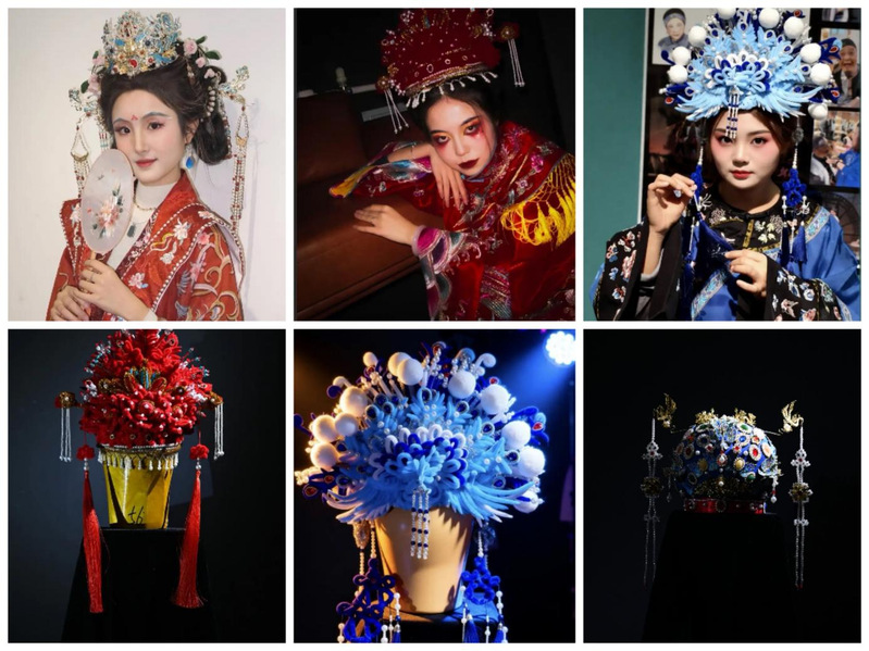 《人物造型设计项目实训》是戏剧影视美术设计专业的核心课程之一,课程涵盖三部分内容:一是传统头饰文化解析,梳理古代冠冕、发簪、步摇等形制的文化内涵与工艺特点,挖掘传统纹样的设计灵感;二是现代头饰设计技法,讲解头饰与脸型、发型、服饰风格的适配逻辑,掌握材质选型、结构搭建、色彩搭配的核心技巧;三是实战创作指导,从草图构思到成品制作,一对一指导学生完成兼具创意与实用性的人物造型头饰作品。