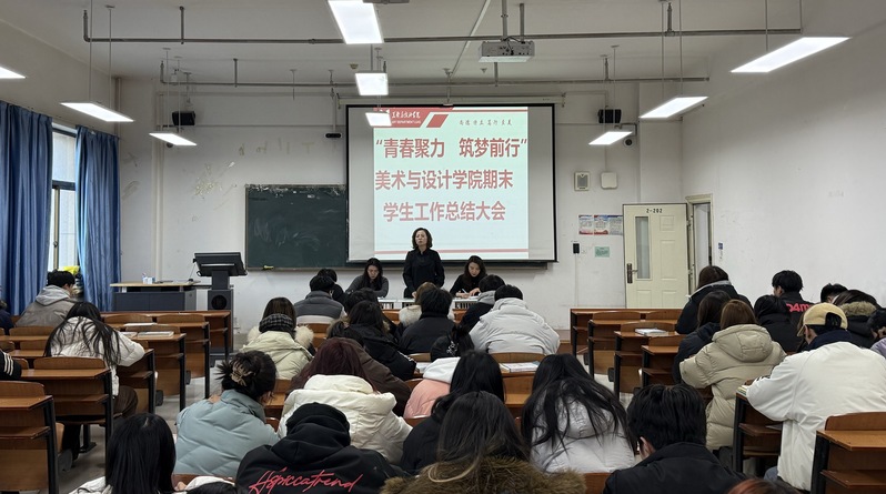 会上,唐老师对2025年学院的团学工作进行了全面总结。本年度学院分团委立足“团结青年,教育青年,管理青年,服务青年”的宗旨,紧扣学校“专业有特点、学生有特长”的要求,立足实际、厚植特色,学院“美育+思政+N”团学工作品牌亮点突出:一是结合特殊节点、主题团日开展理论学习和宣讲活动,强化思想引领,挖掘美育思政新元素;二是发挥艺术类学生思政、美育工作与社会实践志愿服务相结合的优势,打造“行走的思政课”实践育人体系;三是以学科竞赛为抓手,将思政教育和创新创业有机融合,培养创新型、应用型人才;四是发挥“美育”教育特长,以“美育”为线贯穿学生心理健康教育全过程,将美育与心理健康教育深度融合,推进“三全”育人入脑入心;五是将思政教育融于就业工作全过程、各环节,学院结合访企拓岗,加强与企业之间的沟通、交流,为学生就业打下坚实的基础。